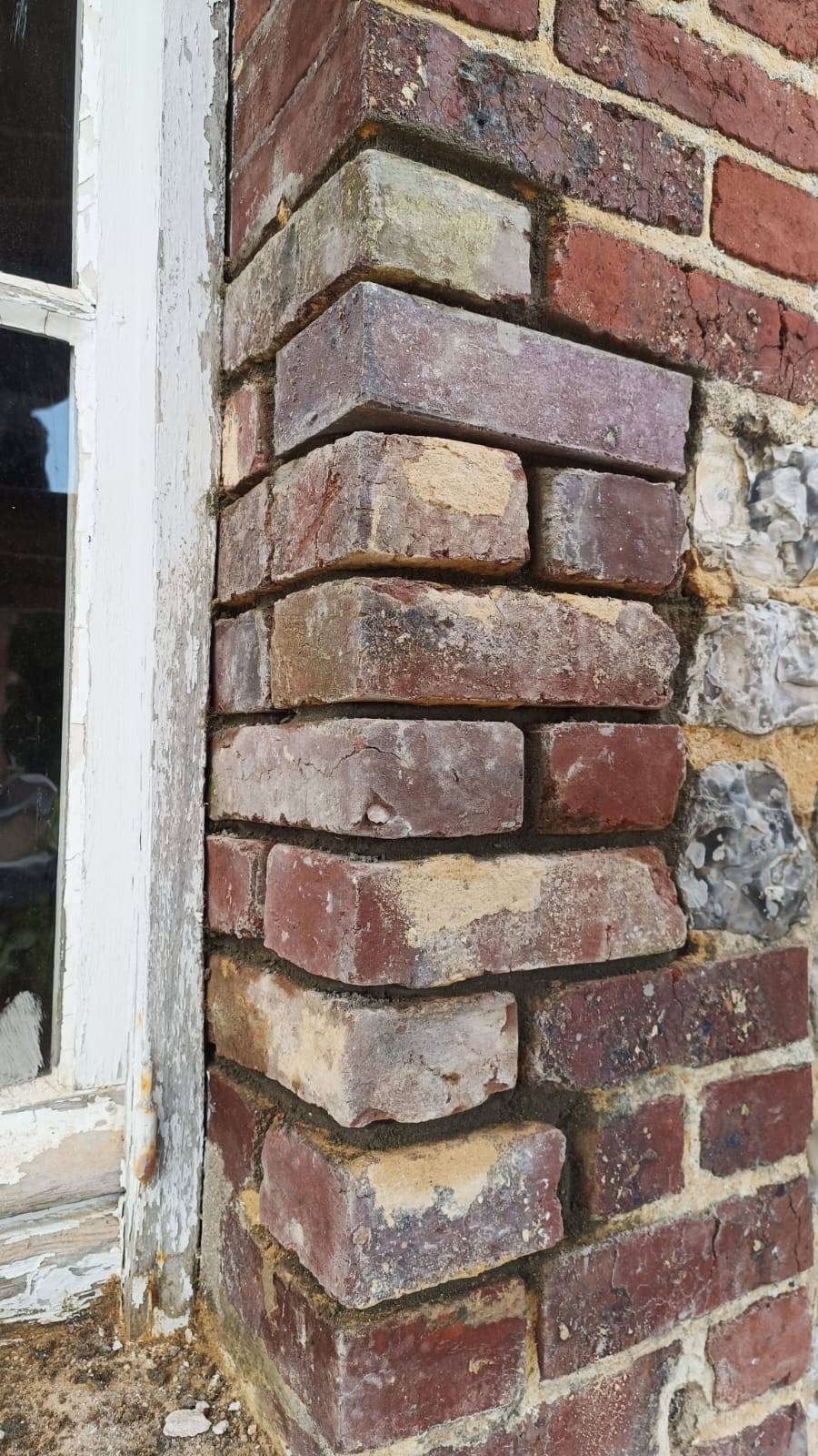 Réparation de gonds sur une façade en brique et silex par nos artisans maçons à Yport 76